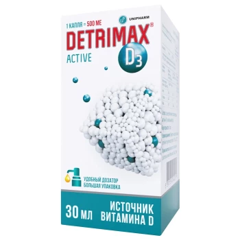 ДЕТРИМАКС® АКТИВ содержит витамин D3 (холекальциферол) — жизненно важный жирорастворимый витамин, необходимый для обеспечения деятельности практически всех органов и систем организма.